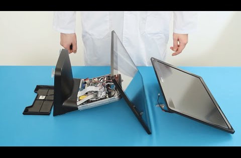 Устройство не займет много места на кассе, барной стойке или станции официанта, зато позволит наглядно отобразить каталог услуг или меню. Емкостной дисплей терминала без рамки, поэтому на нем не будет скапливаться пыль и грязь, а случайно пролитую жидкость можно будет легко вытереть. Специальное снование терминала со сбалансированным центром тяжести позволит не переживать за его устойчивость даже в многолюдном помещении.